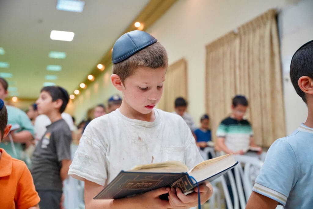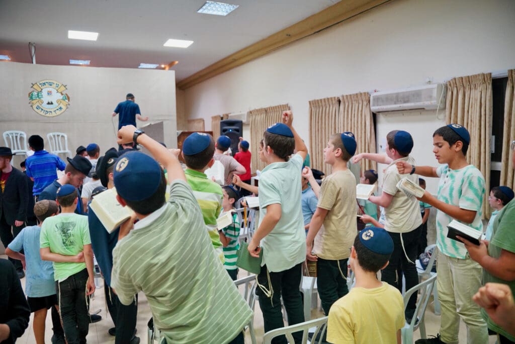 תפילת שחרית שמתנהלת לאחר מכן, בסדר מופתי ובחיות מיוחדת, היא לכאורה חלק שיגרתי מסדר היום, אך בגן-ישראל כל תפילה היא משהו מיוחד. קטעים שונים בתפילה מותאמים לניגוני חב"ד, ודגש מיוחד ניתן על ההקפדה להתפלל כשהעיניים עוקבות אחר המילים מתוך הסידור. כמו הרבי.